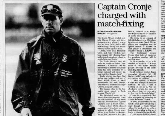 In 2000, the cricket world was rocked by the confession of Hansie Cronjie, the captain of the South African team involved in the match-fixing scandal.
